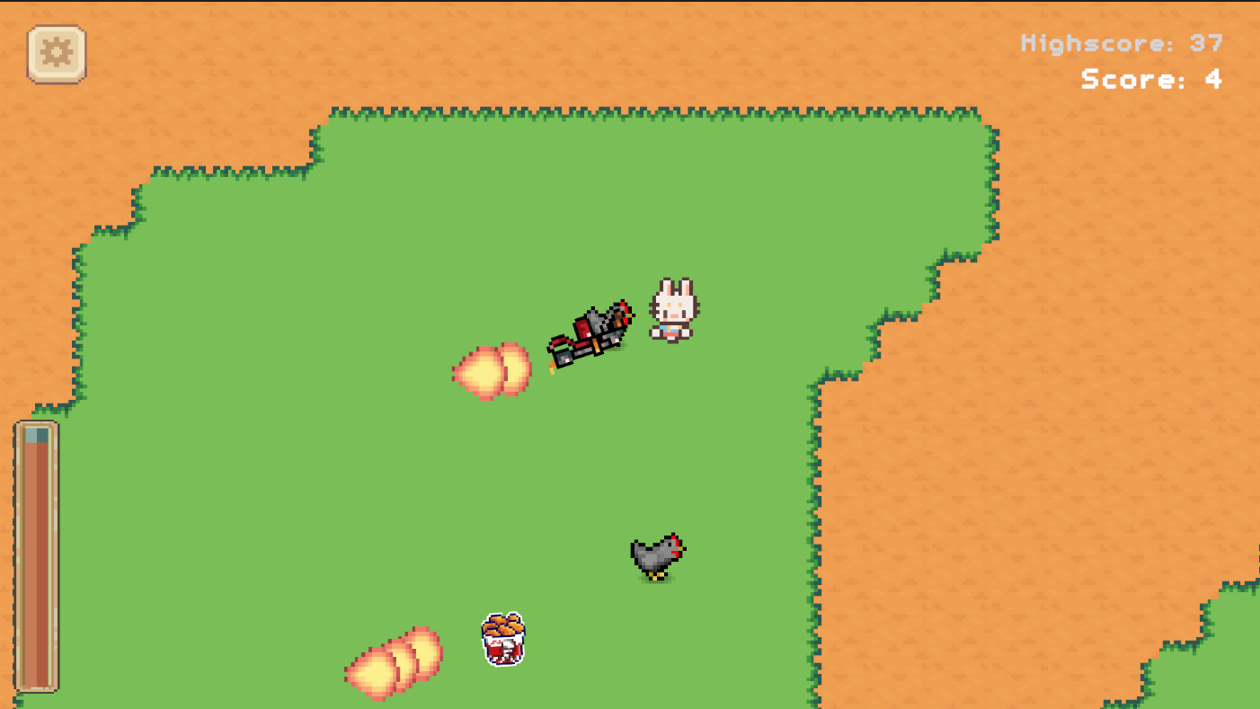 After bunny woke up, there's one sound calling him non stop. The toilet emitting menacing aura luring him to get inside, but even that not a single stoll fell off so he decided to go outside to find some food. He sense something is wrong and that is the case, swarm of chicken coming after him but he also fely something huge is coming out of his rear and heres come the flamethrower out of nowhere so he pick it up and start his chicken discombombulation project 101 right away.